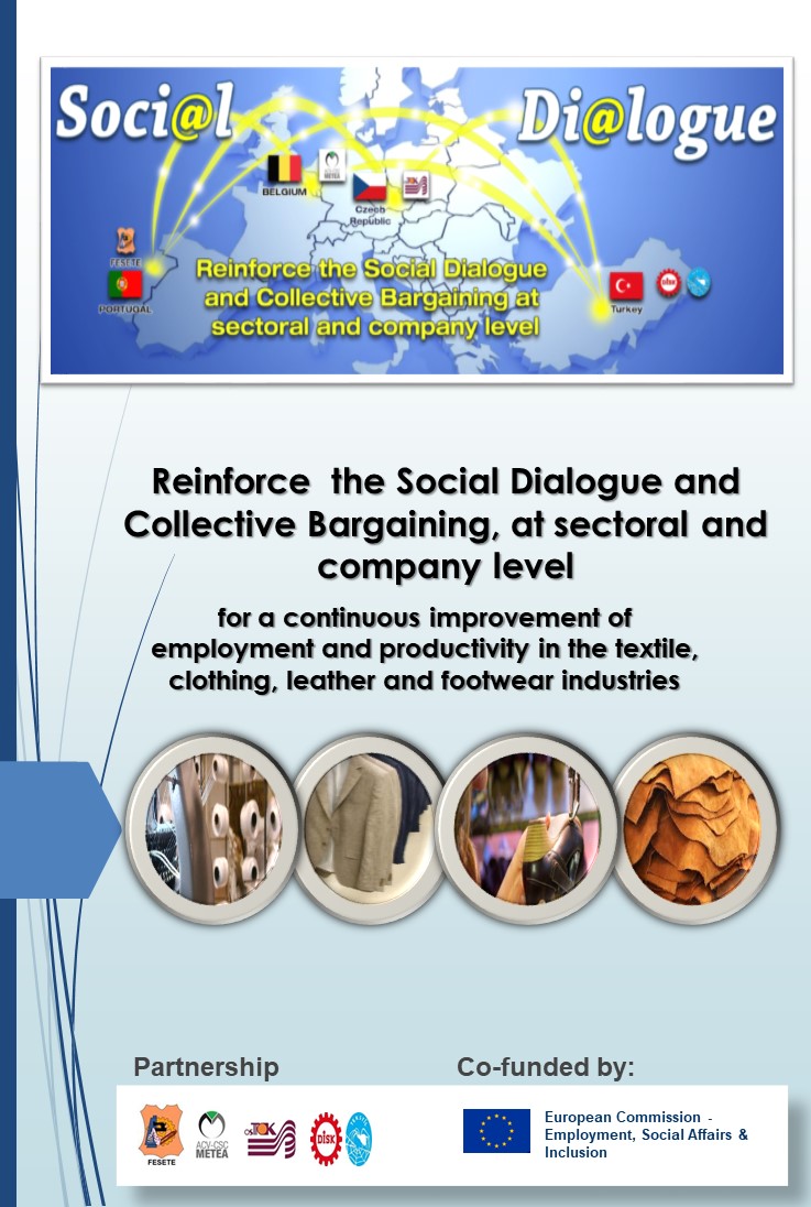 Project Reinforce the Social Dialogue and Collective Bargaining, at sectoral and company level, for a continuous improvement of employment and productivity in the textile, clothing, leather and footwear industries GENERAL OBJECTIVE: Promote the participation of sectoral partners of the Textiles, Clothing, Leather and Footwear Industries in Social Dialogue as a way to transform sectoral and company collective bargaining into instruments which increasingly ensure the viability of enterprises and the defence of employment, in the current context of global and national changes. Read more ...